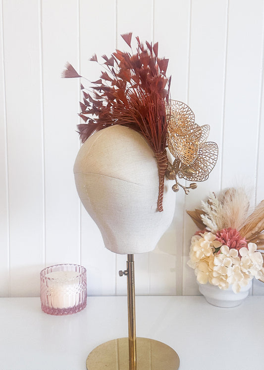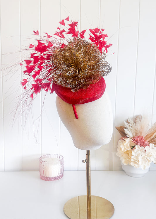 30% OFF“Fantasia” Red & Gold Fascinator