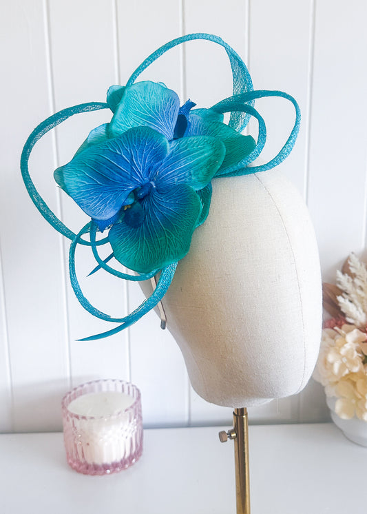 “Riviera" Blue Percher Fascinator