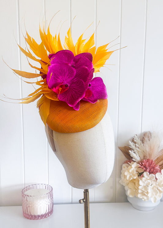 “Dara" Orange & Yellow Fascinator