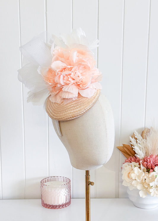 “Donna" Apricot & White Fascinator