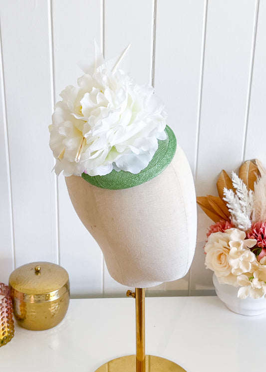 "Marta" - Green & White Fascinator (Petite Collection)