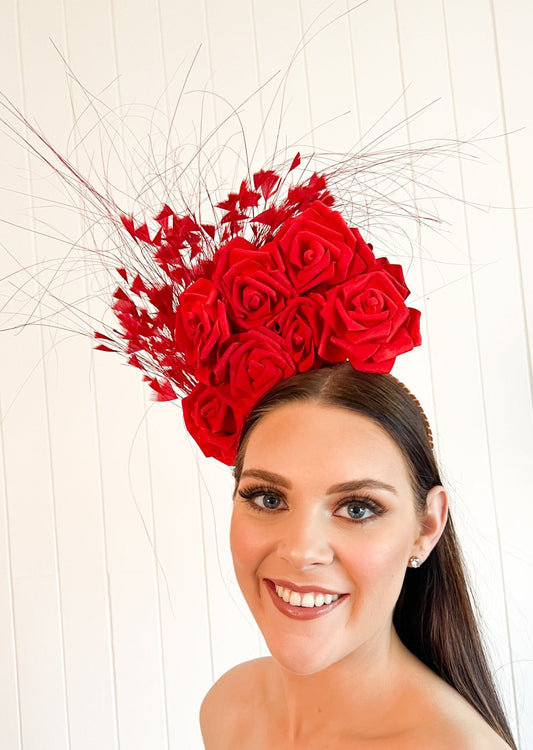 18% OFF"Regan" Red & Gold Fascinator