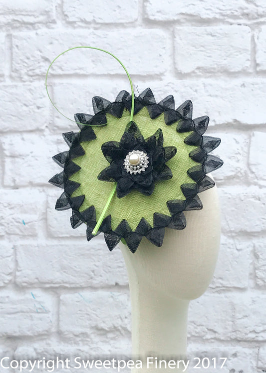 "Nicole" Fascinator - Lime Green & Black Fascinator