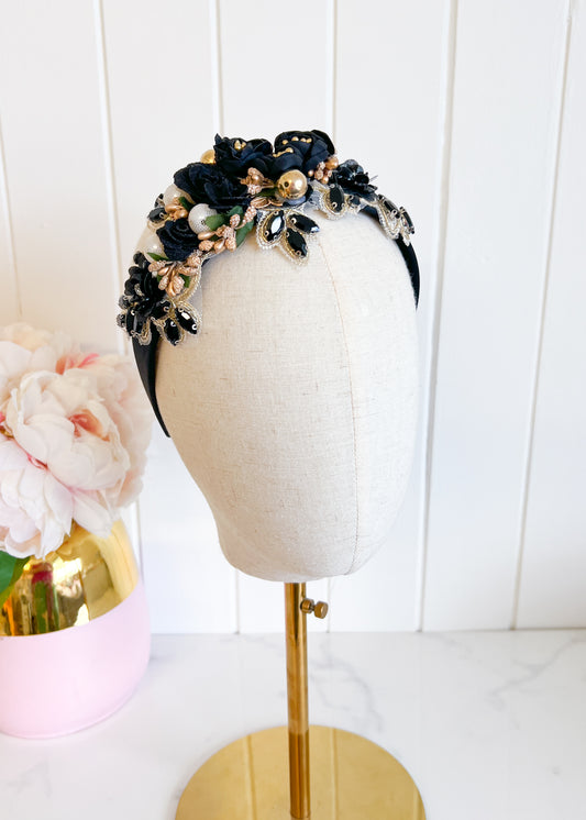 "Isabella" Crown Headband - Black & Gold