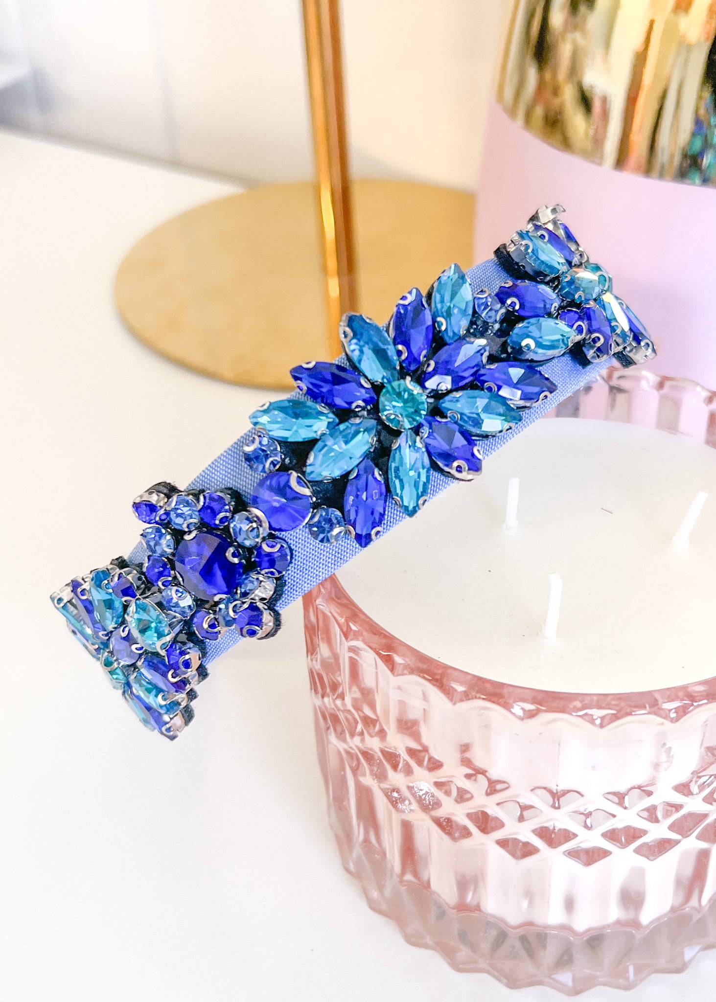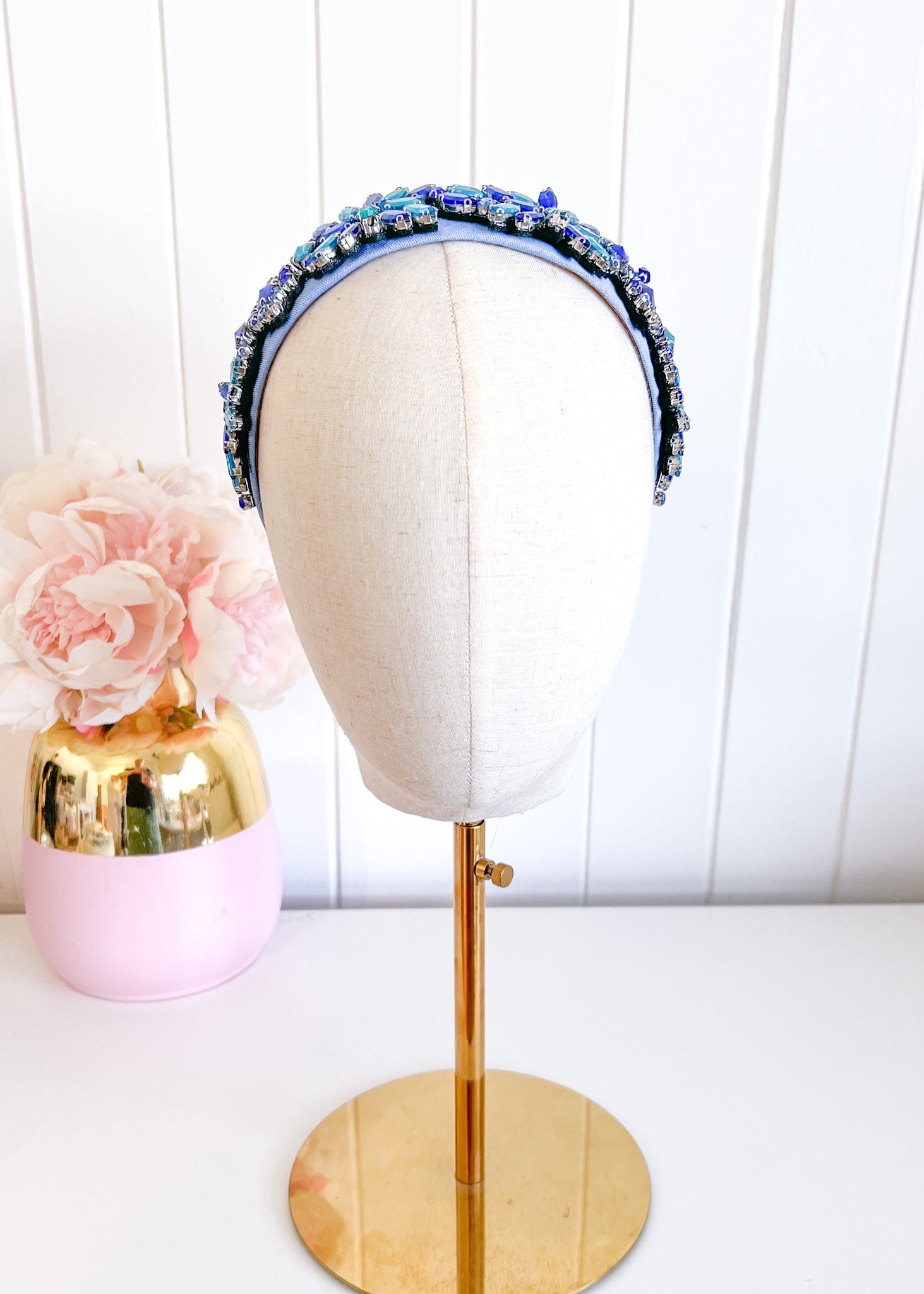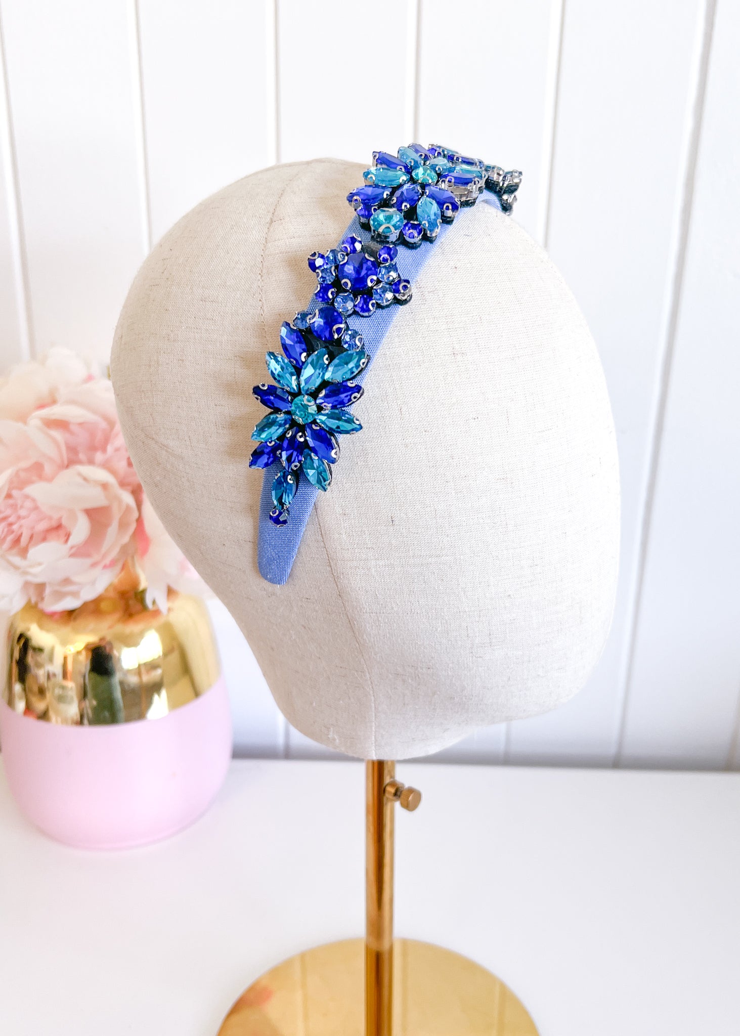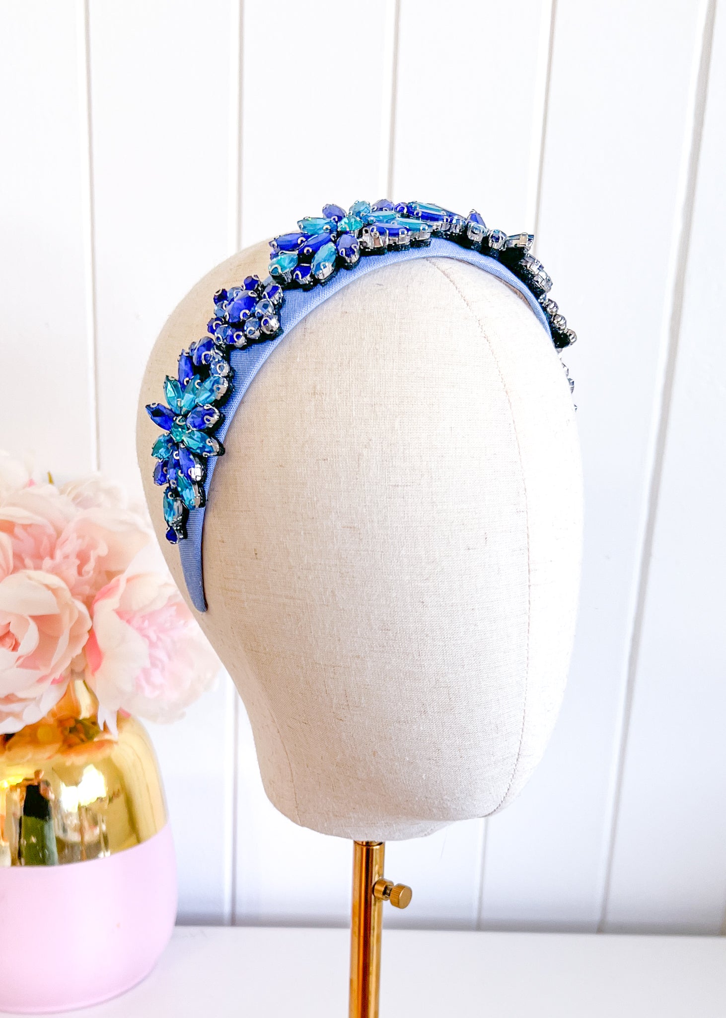 An amazing statement headband. A wide headband bejewelled with bling.