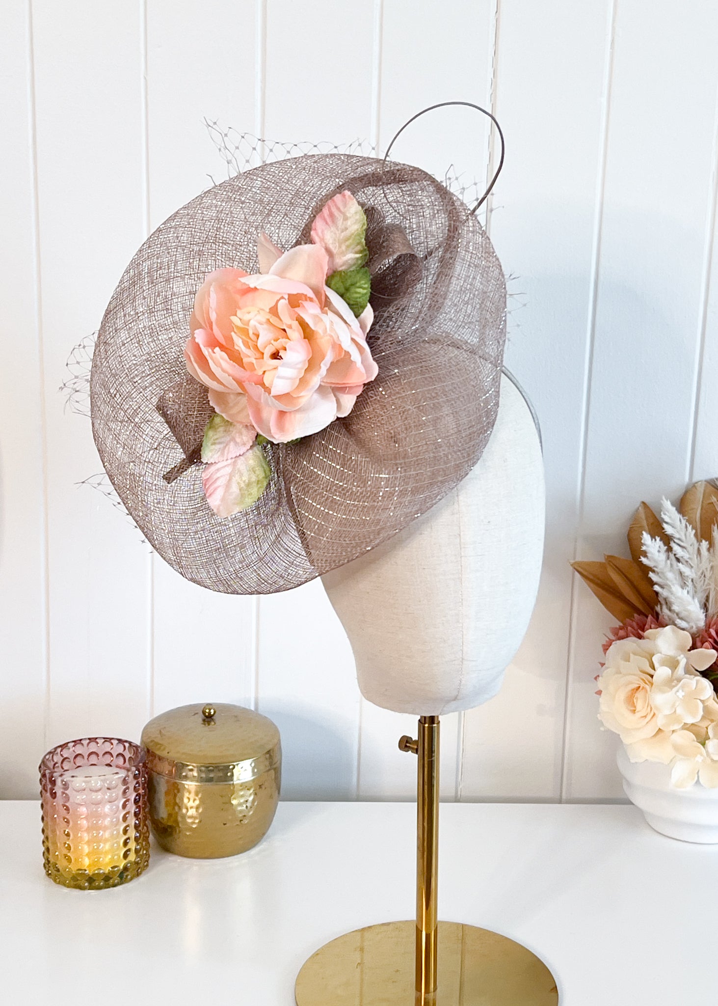 Sweetpea Finery is proud to present this stylish headpiece.