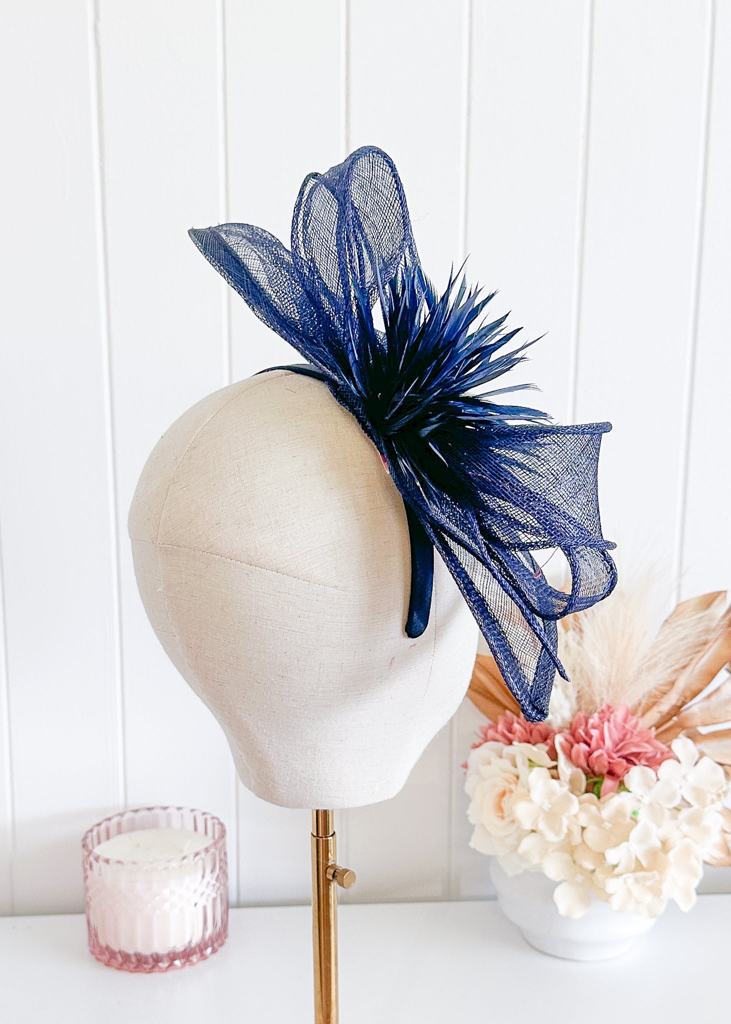 “Quinn” Navy Fascinator