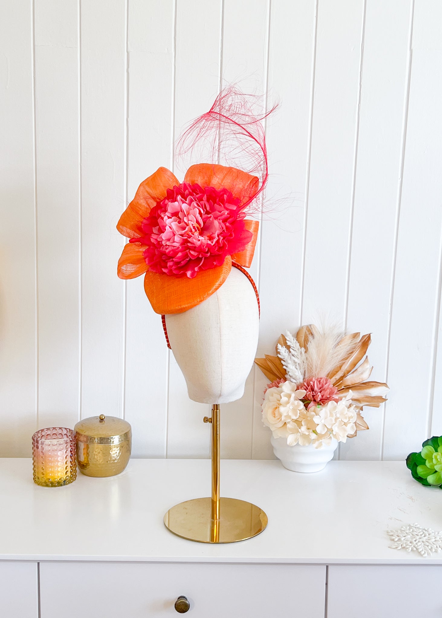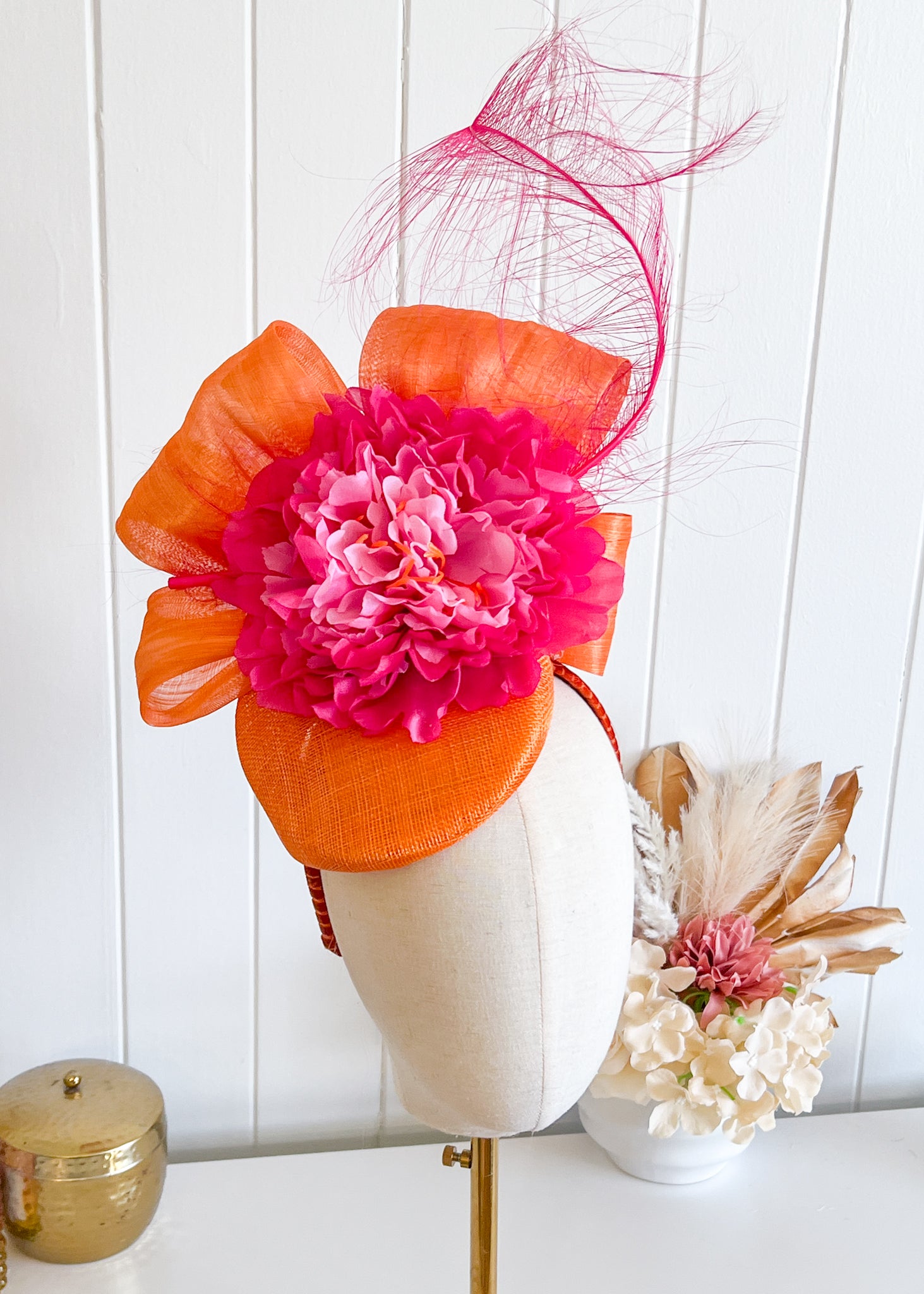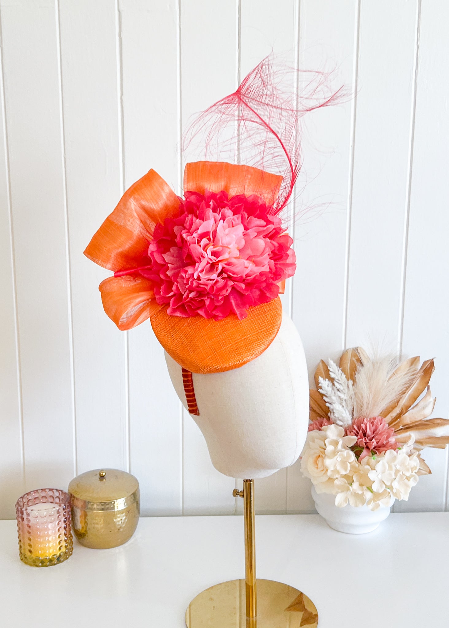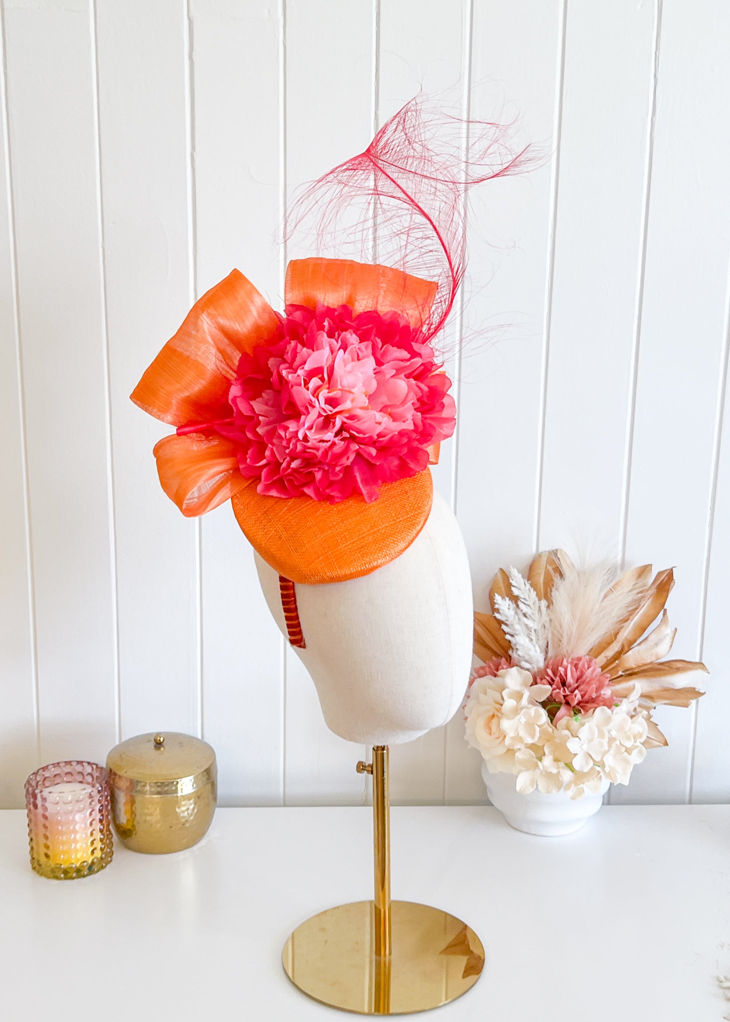 "Salina" Pink & Orange Fascinator