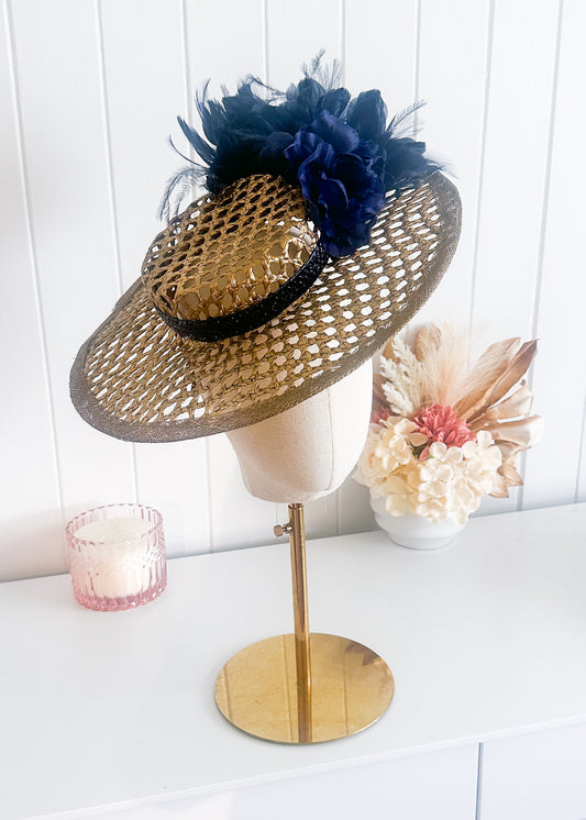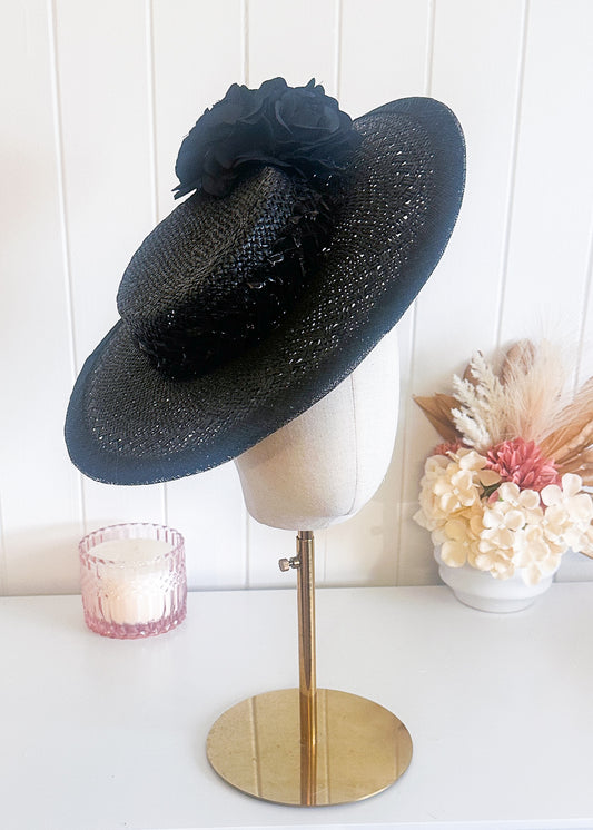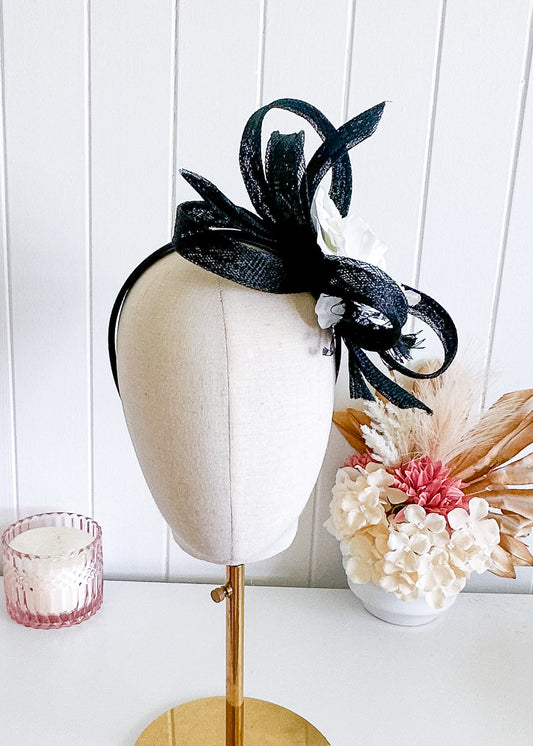 "Bella" Lattice Sinamay Black Fascinator